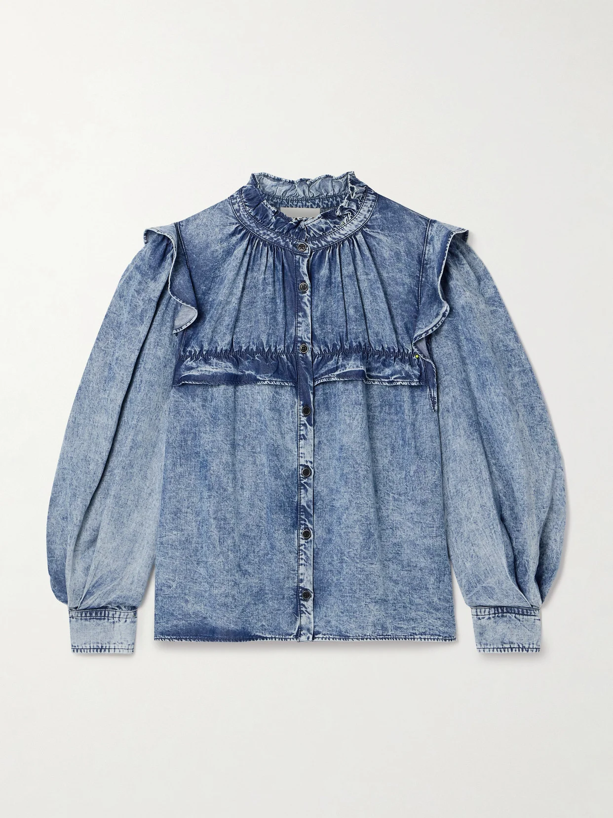 Ruffles make Marant Etoile's 'Idety' blouse feel so romantic. It's cut from soft LENZING™ Lyocell chambray for a slightly loose fit with a pie-crust collar and puffed sleeves. Wear yours with white boyfriend jeans and loafers.