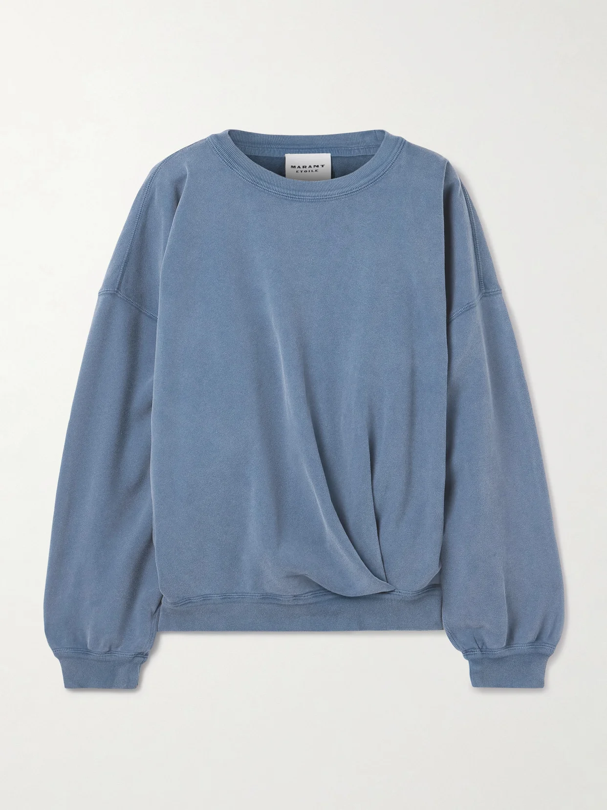 Marant Etoile's 'Sauria' sweatshirt is gathered along the hem, creating subtle texture and volume. It's cut from cotton-jersey in a soft blue shade.