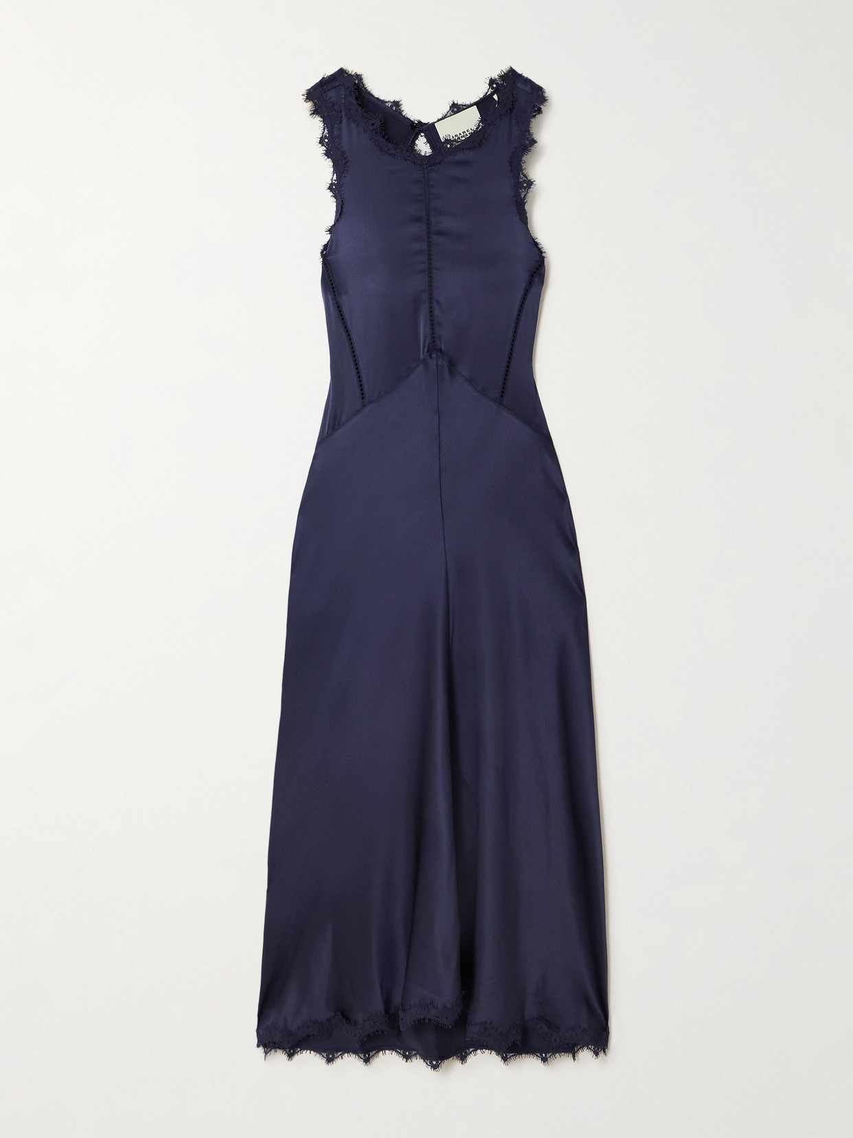 Jadelia Lace And Pointelle-trimmed Silk-blend Satin Midi Dress