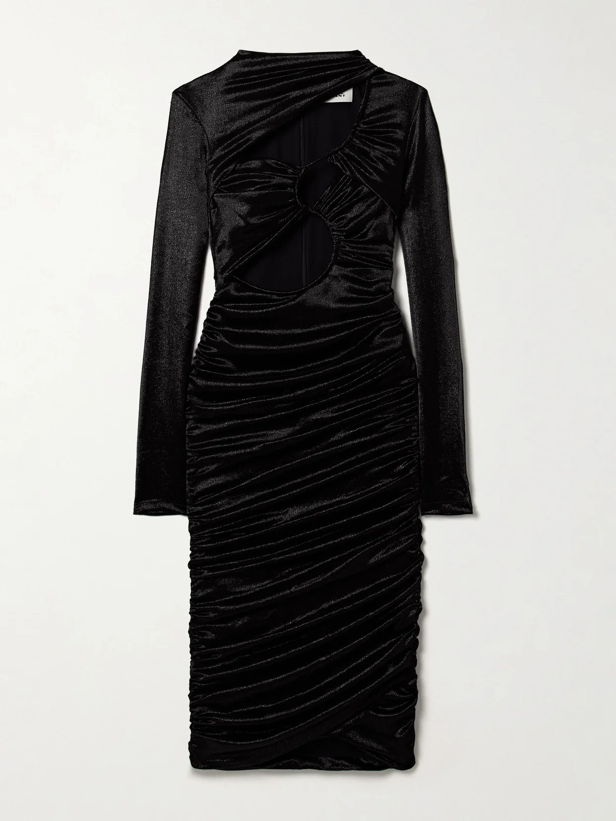 Isabel Marant's midi dress is made from metallic silk-blend satin with a hammered finish that beautifully catches the light. It's designed with skin-baring, asymmetric cutouts and gathered throughout the figure-hugging design for beautiful texture.