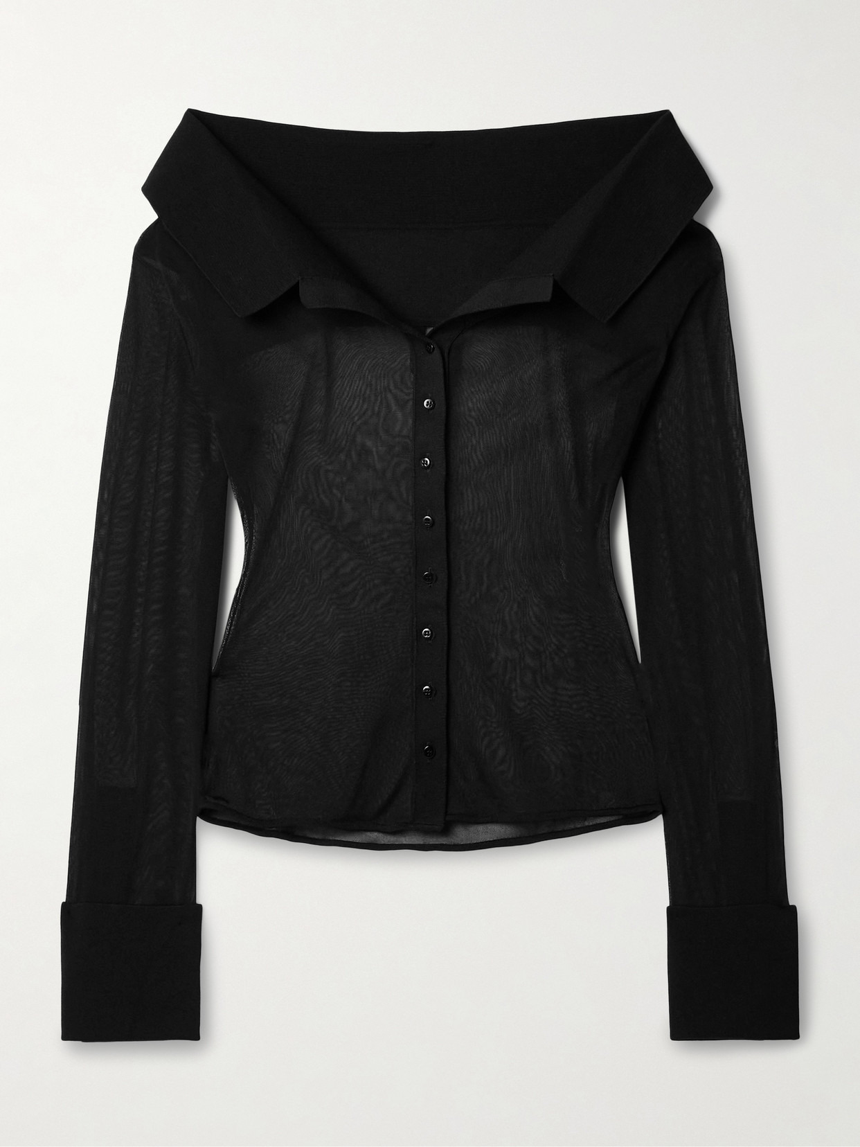 Jacquemus' ‘Brezza' shirt is made from stretch-jersey that's so lightweight, it's sheer. It has with a pointed collar that sits off-the-shoulders and is cut for a loose fit. Style yours with a skirt and sandals.