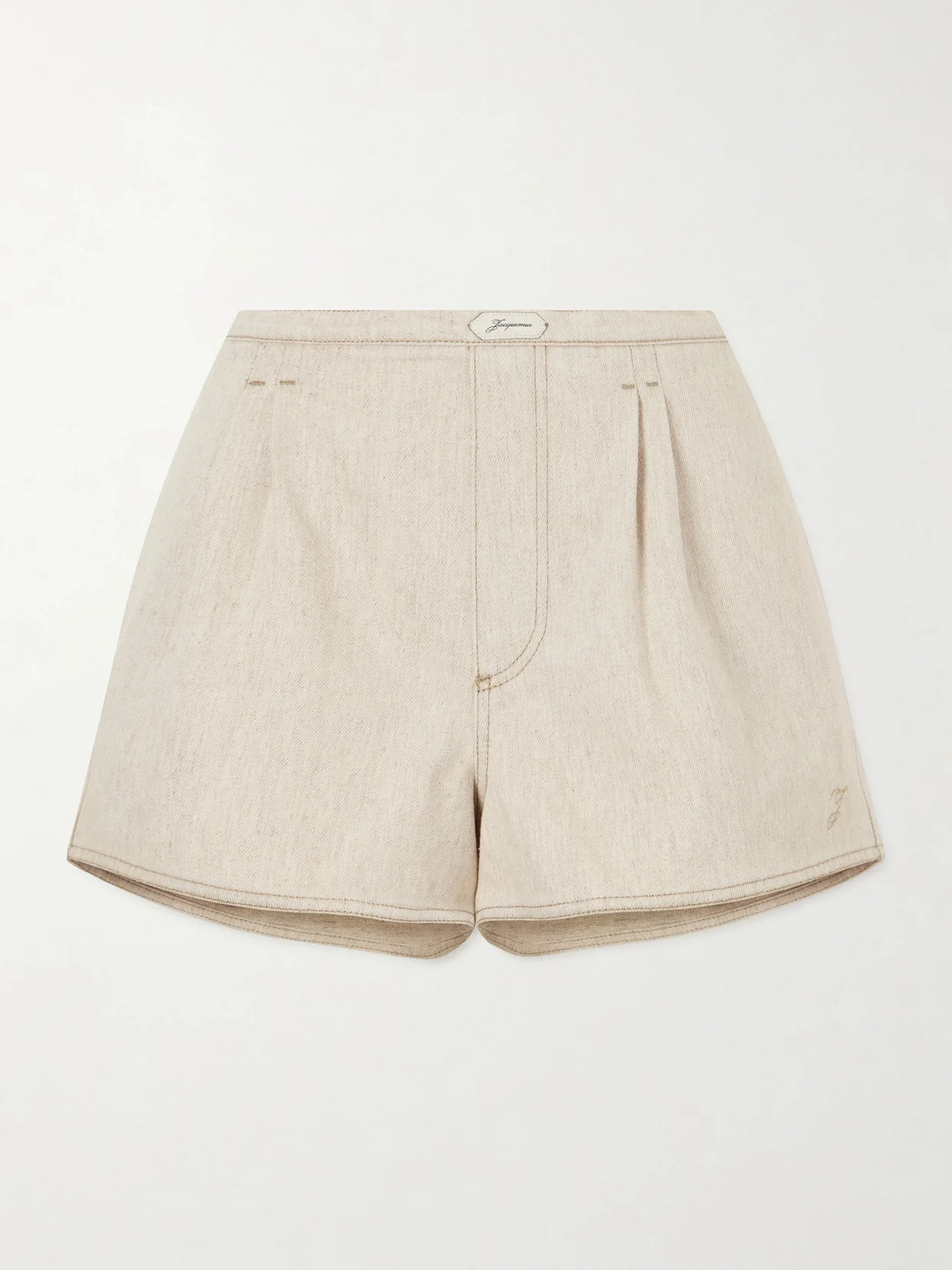 Jacquemus' 'De-Nimes Amelo' shorts balance tailoring with the label's relaxed sensibility. Made from a crisp cotton and hemp-blend, they sit at a mid-rise waist with neat pleats and an elasticated back before falling to softly flared legs. Subtle embroidery and a faux fly complete the design.