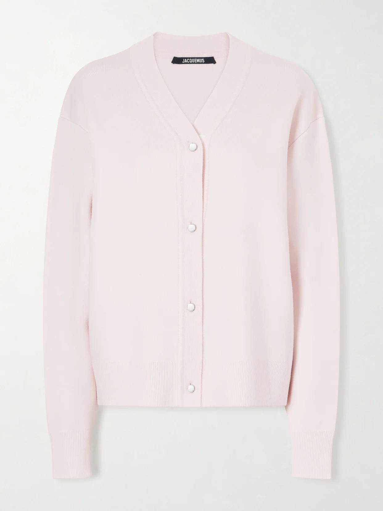 Jacquemus' 'Doppio' cardigan comes in a ballet slipper shade of pink. Knitted from warm merino wool-blend in a relaxed fit, it's refined with rounded shoulders and gleaming silver-tone buttons. Keep it casual with a trusted pair of jeans or dress yours up with a skirt.