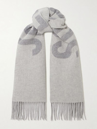A cozy accessory for chilly days, Jacquemus' scarf is jacquard-knitted with the logo in neutral block letters. It's made from warm wool and has soft fringing along the ends. Knot yours firmly in blustery weather. Details & Care - Tonal-gray wool - 100% virgin wool - Dry clean