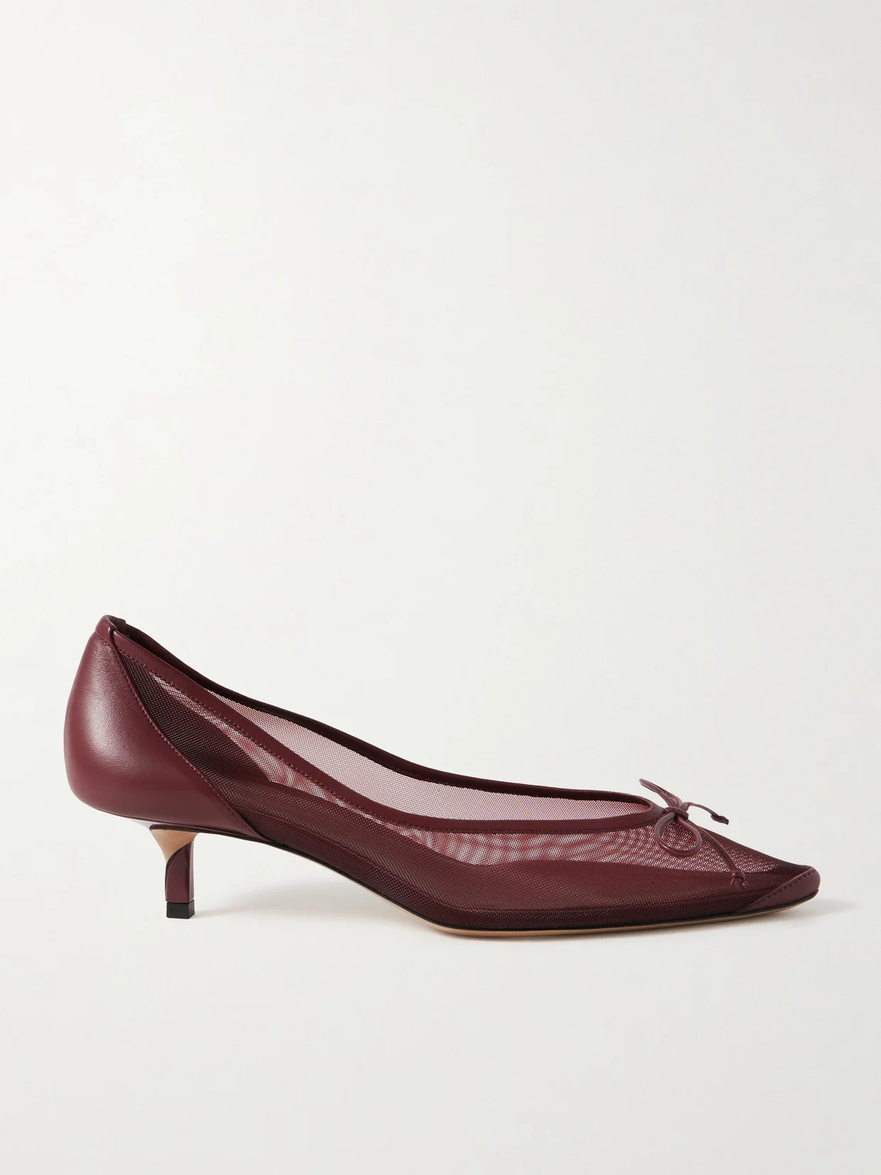 Tourni Bow-detailed Leather-trimmed Mesh Pumps