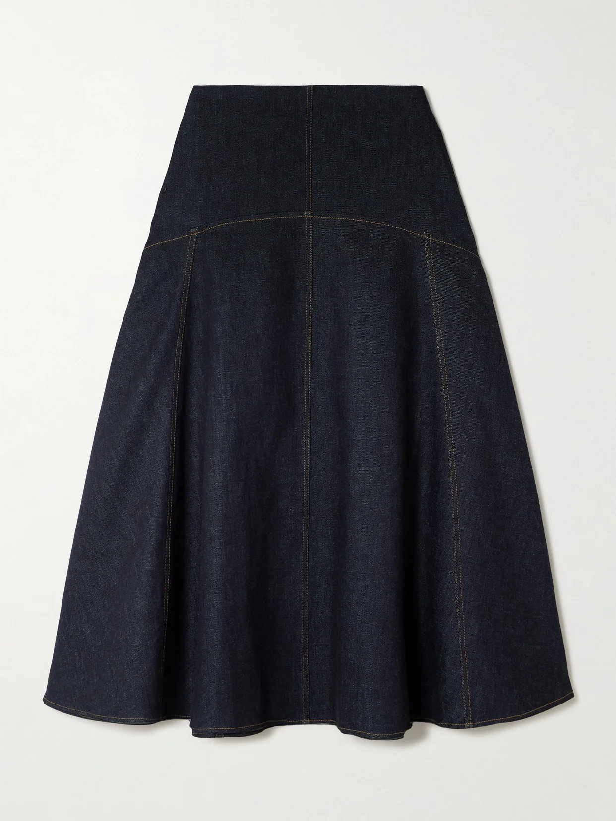 Triangle De-nîmes Embroidered Denim Midi Skirt