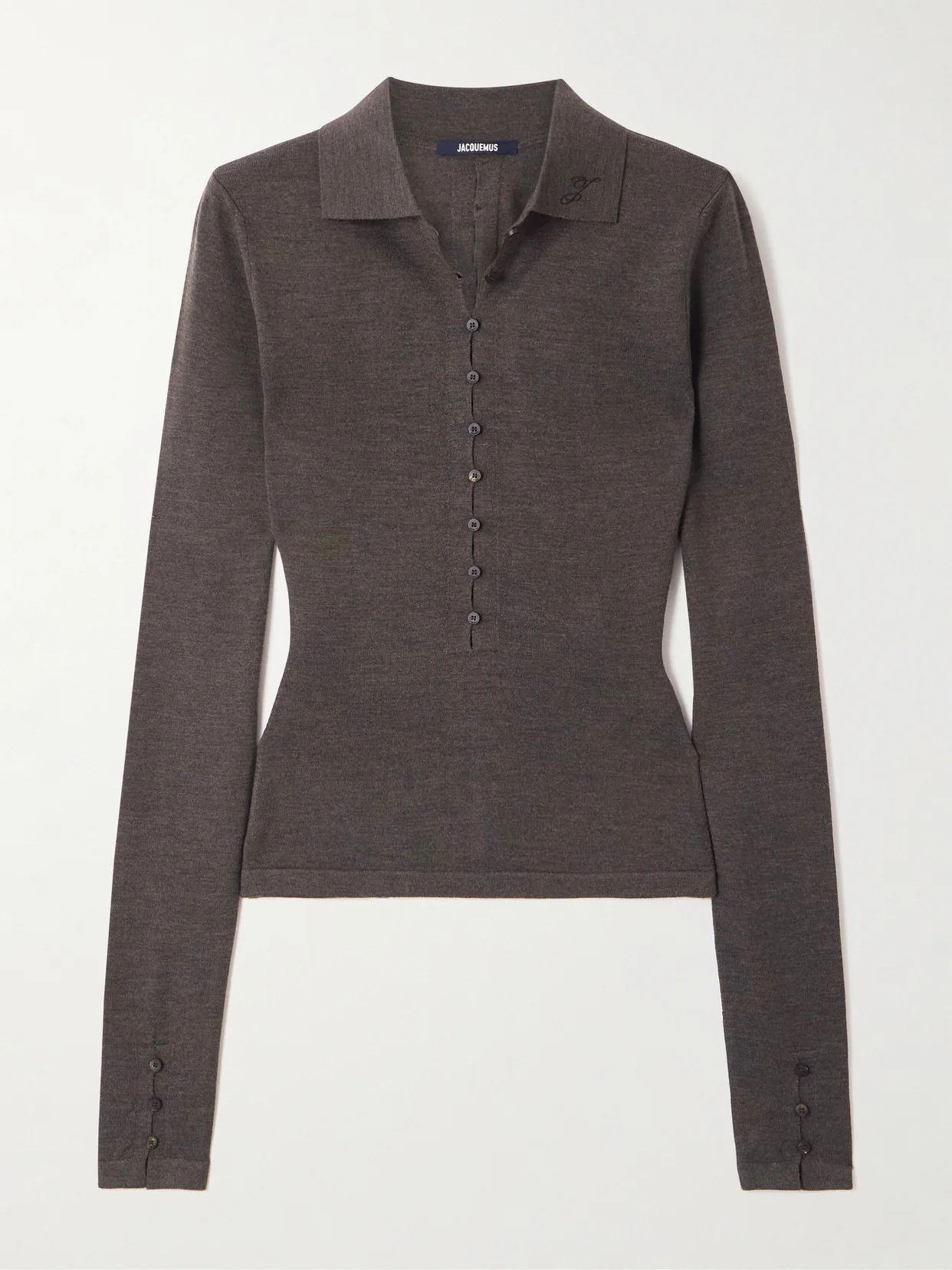 Jacquemus' reimagines the classic polo sweater with a longer placket and buttons at the cuffs, too. It's made from a wool-blend and has a close fit. The collar is embroidered with the tonal moniker.