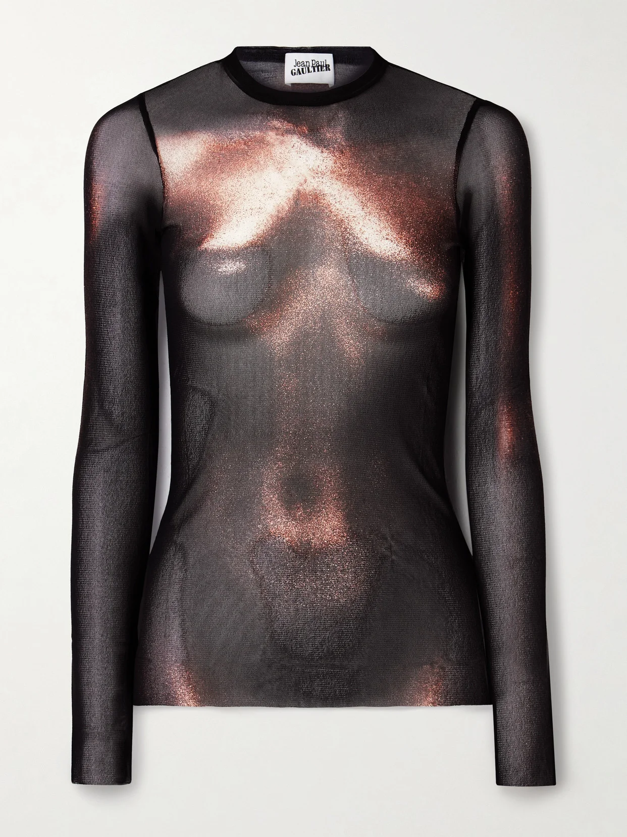 Jean Paul Gaultier champions the trompe l'ail effect so flawlessly, you're guaranteed to do a double take because it looks so realistic. Made from semi-sheer mesh, this top is printed with the 'Body Dust' motif. It's meant to be worn with the coordinating pants in our edit, and we carry the dress version, too.