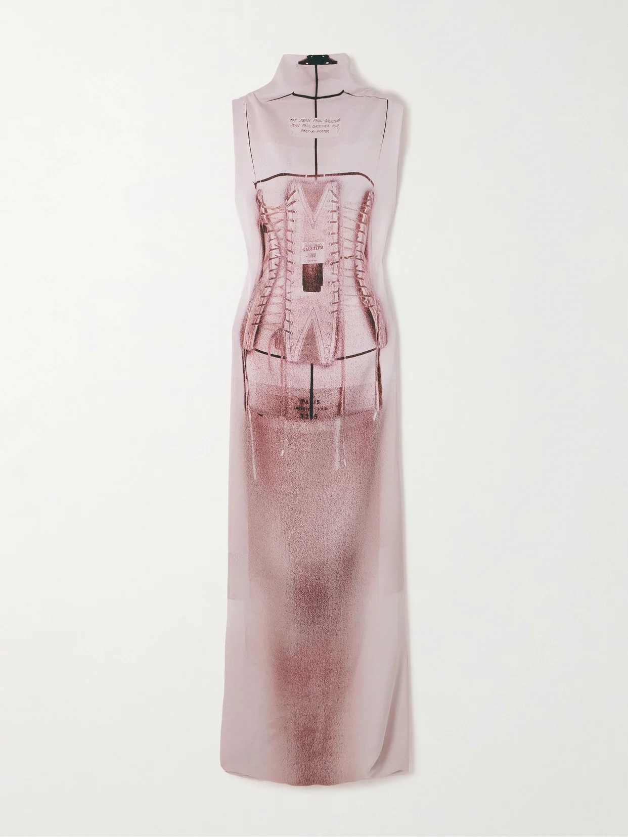 Jean Paul Gaultier is renowned for its innovative trompe l'ail designs, which always draw attention. This dress cleverly creates the illusion of wearing a corset, another signature of the brand. It's made from comfortable jersey for a close fit and has a mock neckline.