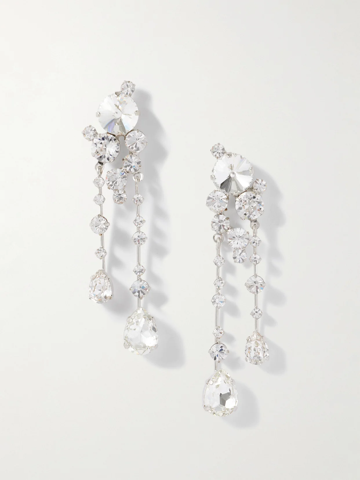 Jennifer Behr's 'Jayleen' earrings capture the beauty of a "starry constellation". They're made from silver-plated metal and have swishy asymmetric drops set with round- and pear-cut crystals.