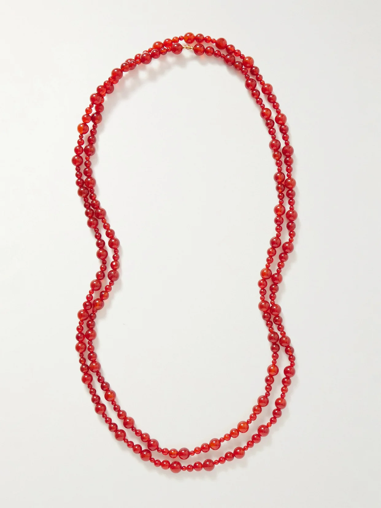 Jennifer Behr's 'Veda' necklace is strung with vibrant carnelian beads, which are said to bring courage, vitality and motivation to their wearer. They have a trio of gold-tone beads and 74-inch length that's generous enough to wrap multiple times around your neck.