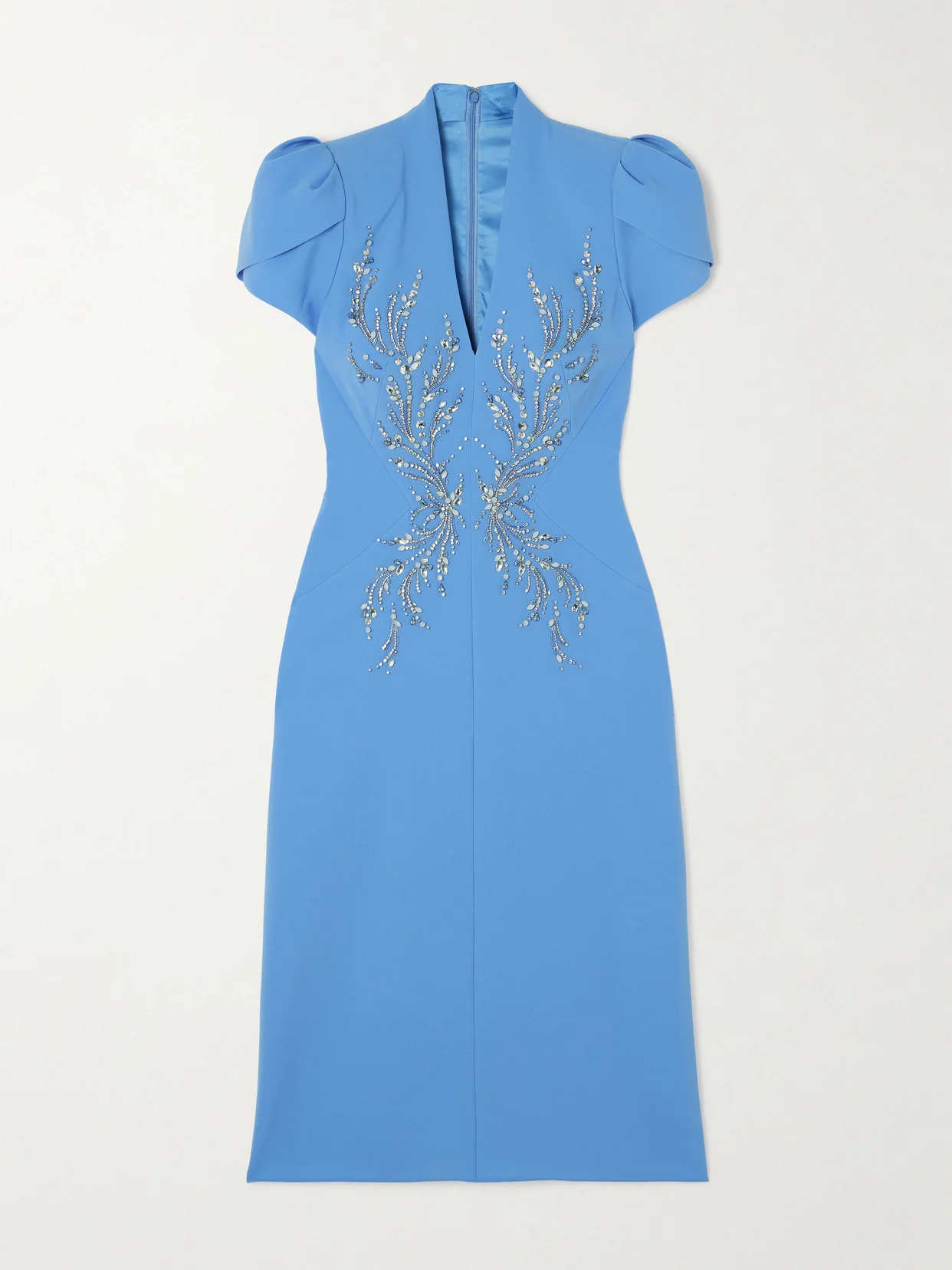 Make your next event one to remember with Jenny Packham's 'Firefly' gown. It's cut from crepe in a '40s-inspired silhouette with a deep V-neckline and petal sleeves. Match your jewelry or shoes to the shimmering crystal embellishments trailing the bodice.