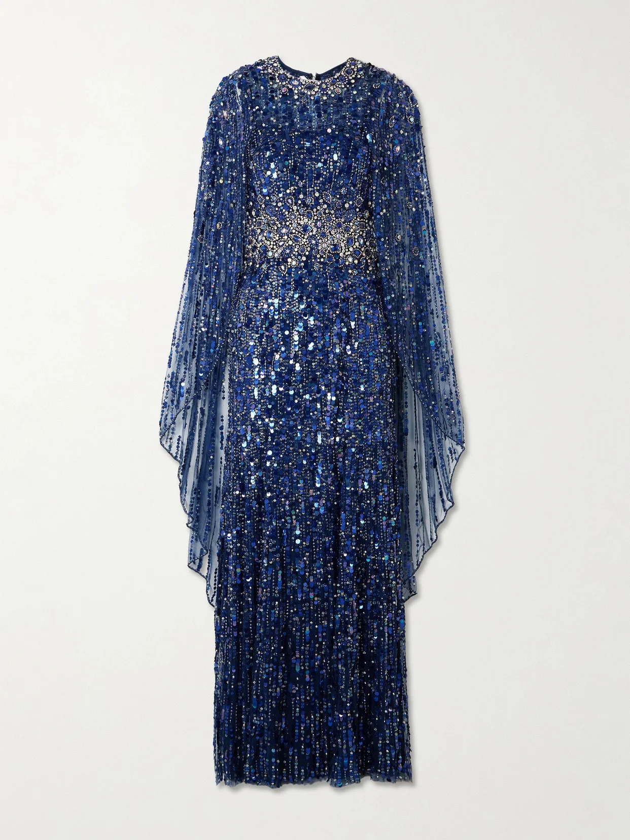 EXCLUSIVE AT NET-A-PORTER. Jenny Packham's 'Honey Dew' gown is a masterclass in opulence, crafted to captivate from every angle. It's handmade from tulle with cape-effect sleeves and embellished with crystals and sequins that create a striking, celestial finish. Pair yours with minimal accessories to let its radiance take center stage.