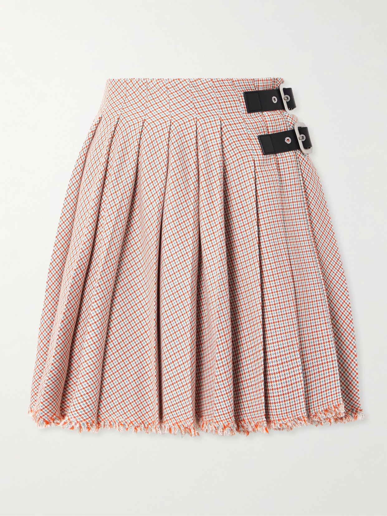 Jil Sander puts a punk-inspired twist on this otherwise preppy mini skirt. Made from checked cotton and wool-blend, it has leather buckled tabs at the hip and sharp pleats that create plenty of movement. The frayed edges lend a deconstructed feel.