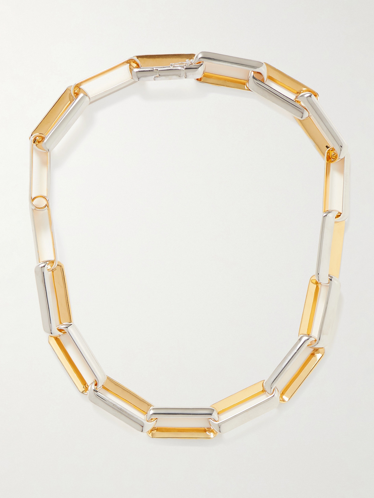 Jil Sander's necklace is made from silver- and gold-tone metal that really highlights the chunky, elongated links. Wear yours solo for the biggest impact.