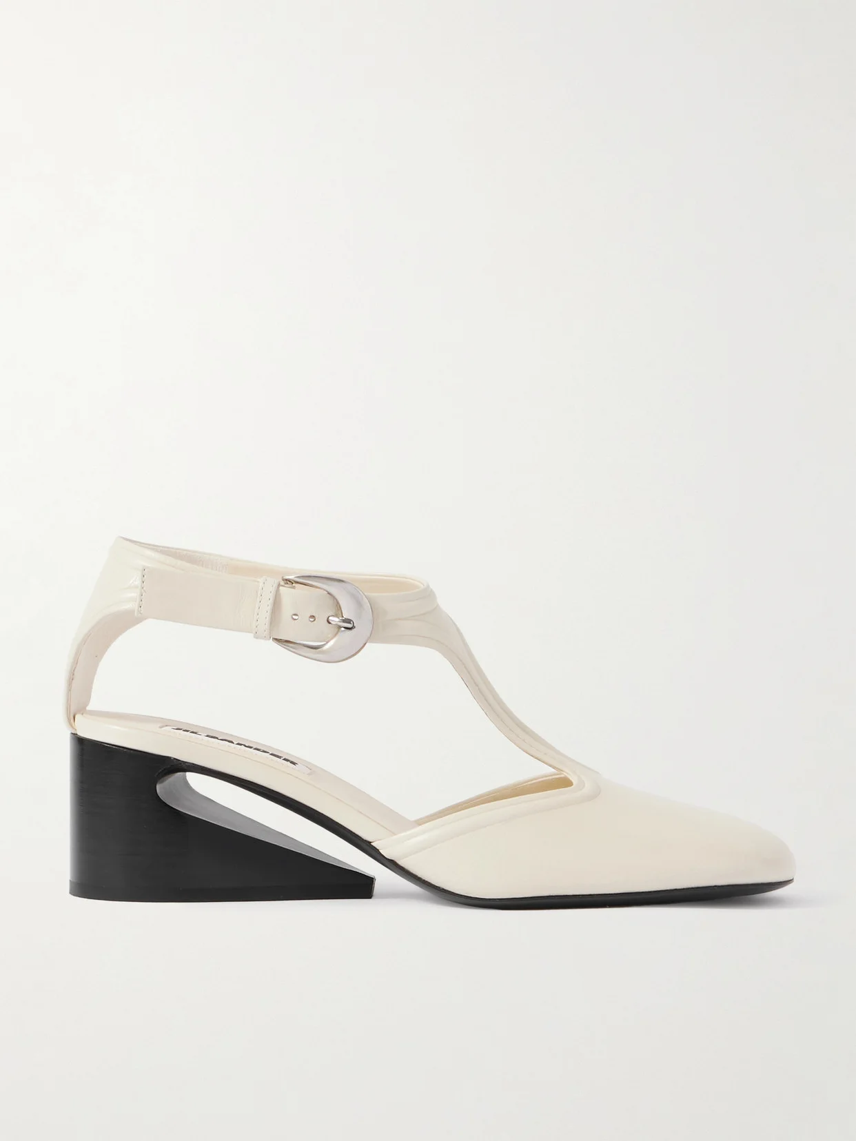 Jil Sander's pumps bring a modern, sculptural element to retro Mary Janes. They've been made in Italy from soft leather with squared toes and T-bar straps. Wear yours with cropped hems so the architectural heels are always on display.