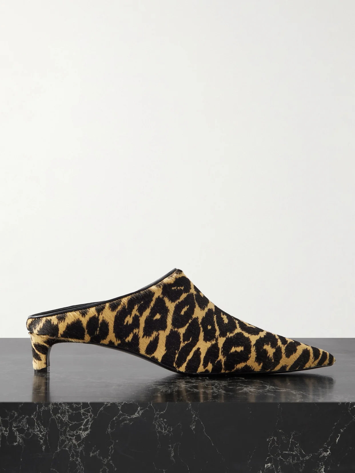 Jil Sander's striking mules have been crafted in Italy from leopard-print calf hair with supple leather linings for comfort. They have classic pointed toes and rest on wearable 35mm kitten heels. Keep the rest of your look minimal to let them stand out.
