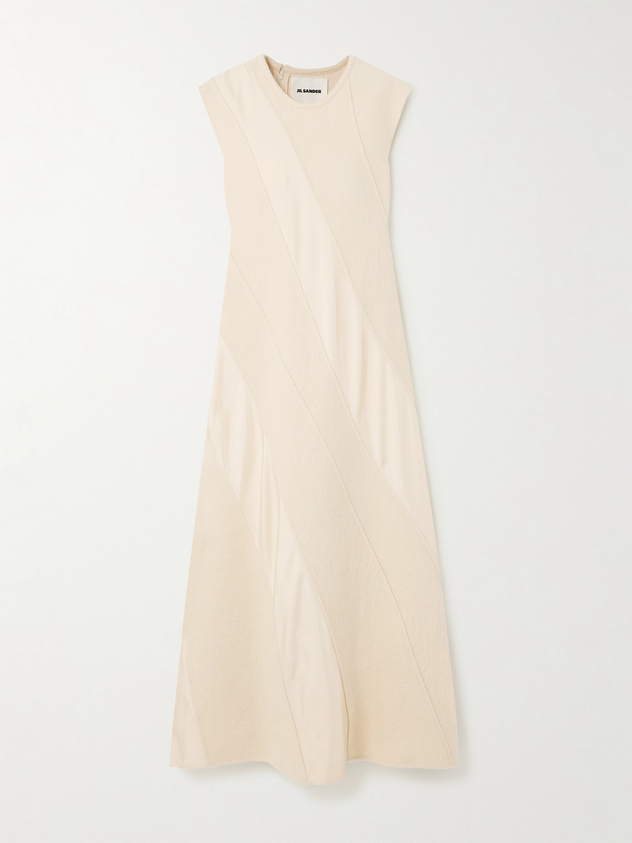 Paneled Cotton And Wool-blend And Satin Midi Dress