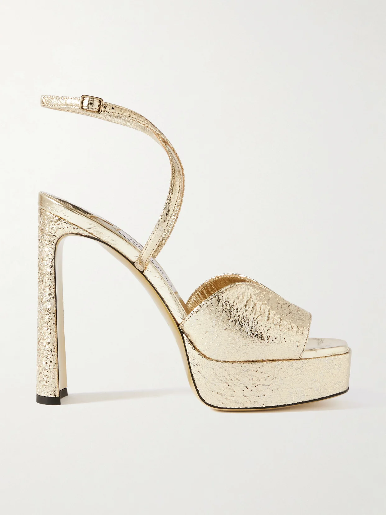 Jimmy Choo's footwear is always so covetable. Defined by straps that crossover at the ankles, these 'Karli' sandals have been made in Italy from light-catching metallic textured-leather. The 125mm heels and platforms give them that '70s disco feel.