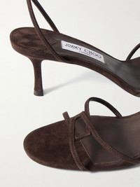 Jimmy Choo's shoes are a favorite for A-listers like Zendaya and Bella Hadid for the red carpet. These 'Leo' sandals have been made in Italy from smooth suede with barely-there crossover straps and 65mm stiletto heels. Size & Fit - Fits true to size, take your normal size - Only available in full sizes, go up to the nearest whole size if you take a half size - Italian sizing Details & Care - Heel measures approximately 65mm/ 2.5 inches - Chocolate suede (Calf) - Buckle-fastening ankle strap