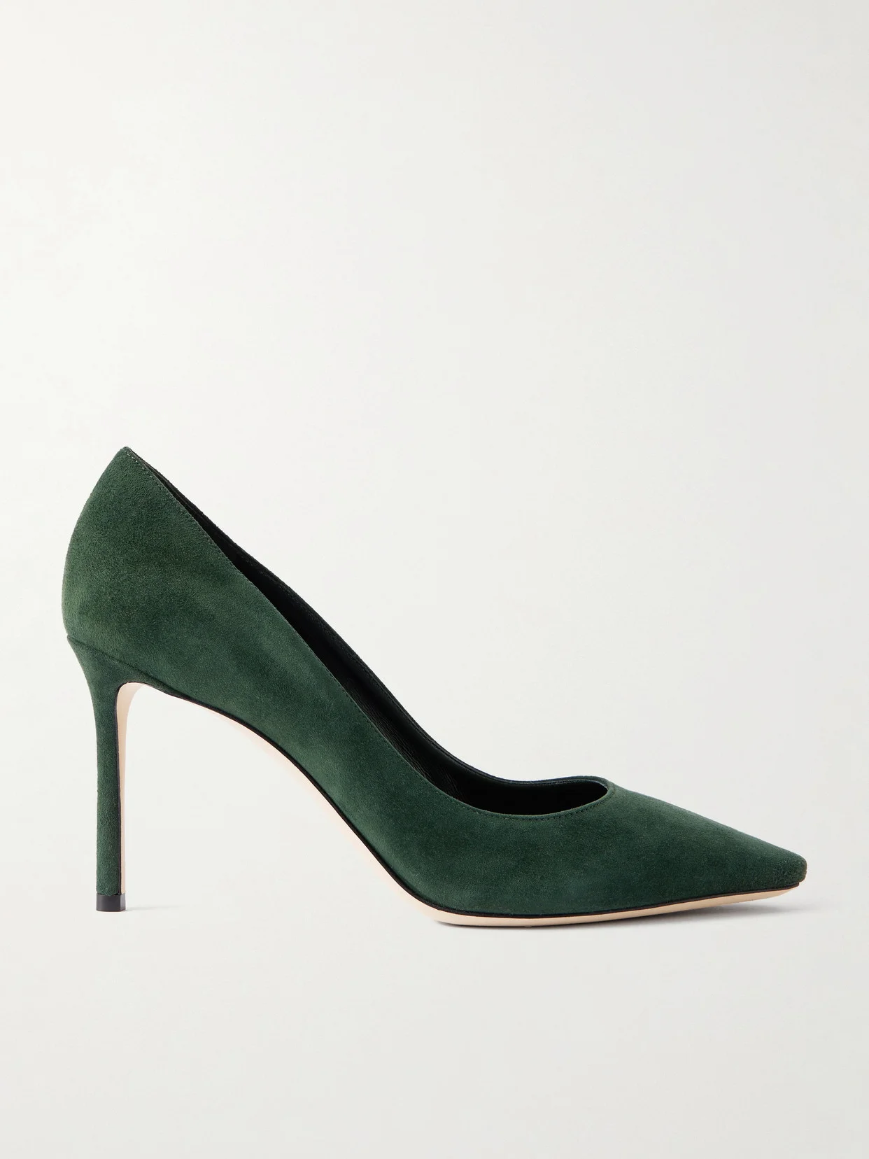 Jimmy Choo's classic 'Romy' pumps will easily transition from desk to dark. This versatile pair has been crafted in Italy from suede in a flattering point-toe silhouette. Finished with an 85mm heel and padded insole, they give you the perfect amount of lift. Small to size. See Size & Fit notes.