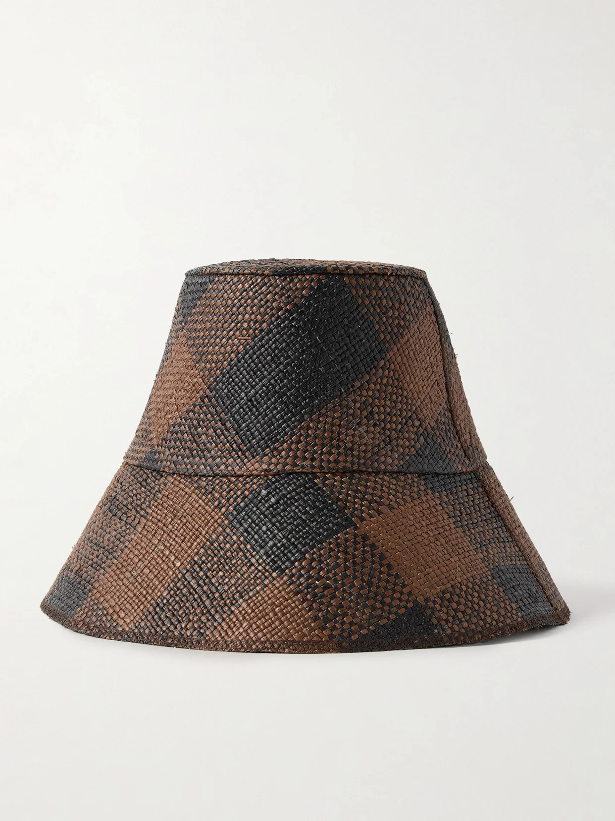 Johanna Ortiz's 'Heaven and Earth' bucket hat is made in collaboration with Artesano, an Ecuadorian brand that highlights the talent of local weavers. It's made from black and brown toquilla straw in a bold check motif. Wear it on vacation when heading to the beach or pool. Responsible Craftsmanship. This product promotes artisanal skills and a brand that invests in communities and adheres to fair-trade principles. Find out more about our NET SUSTAIN criteria here.