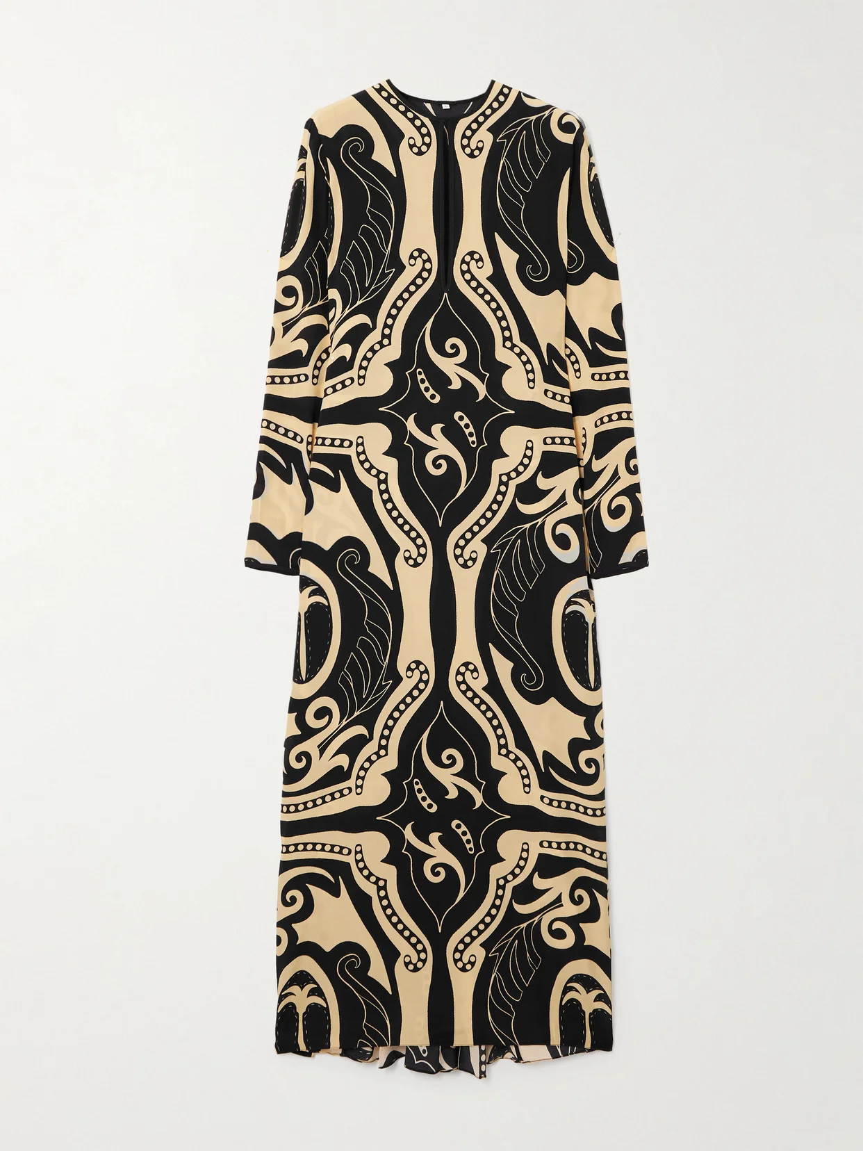 Johanna Ortiz's designs celebrate the label's Colombian heritage. Made from silk-crepe, this 'Libertad' dress is printed with bold botanical motifs. It has a floaty shape and a deep notched neckline. Wear yours day or night.