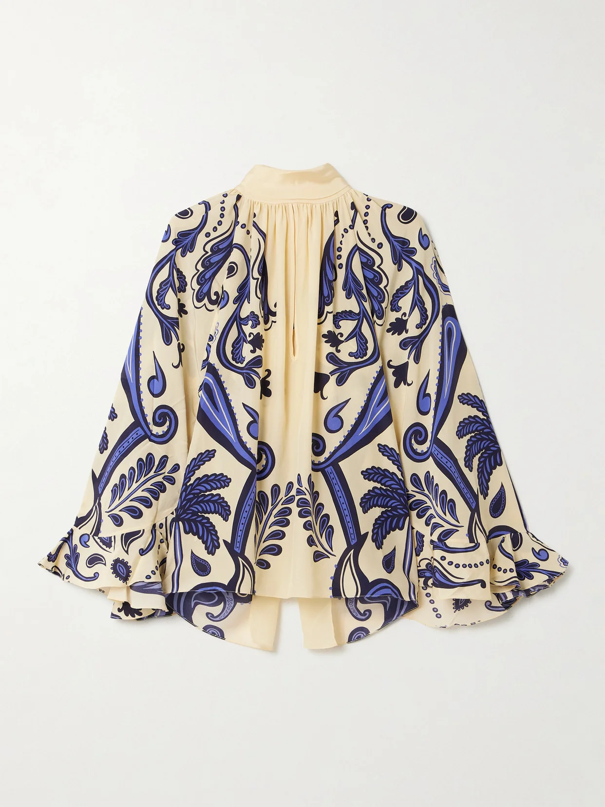 Rimto Sol Tie-detailed Cutout Printed Silk Crepe De Chine Blouse