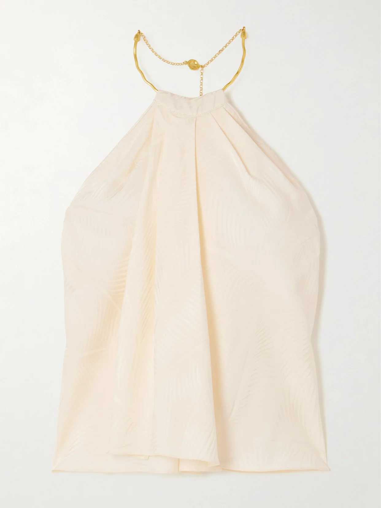 You'll find subtle nods to Johanna Ortiz's Colombian heritage woven throughout the designer's collections. This 'The Root' top is cut from satin-jacquard woven with subtle palm motifs and smocking at the low-cut back. Coordinate your jewelry with the sculptural gold-tone chain halter neck.