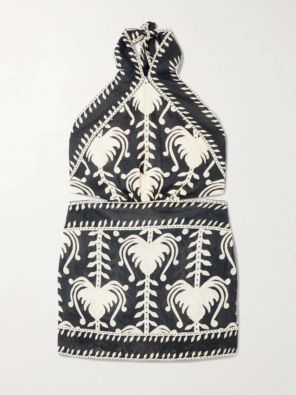Tide Strength Open-back Printed Woven Halterneck Mini Dress