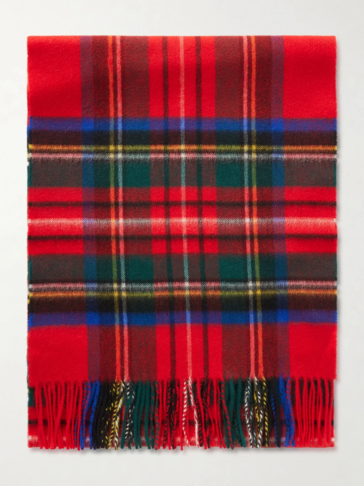Johnstons of Elgin's scarf has been made in Scotland from sumptuously soft cashmere and patterned with timeless tartan. The ends are fringed for added texture.