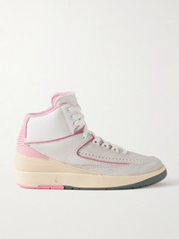 Nike's 'Air Jordan 2' sneakers have seen countless updates since their '86 debut - this 'Retro' pair is designed with cotton candy-inspired accents. Made from light-gray suede, they have a high-top silhouette with canvas trims and brand monikers embroidered at the back.