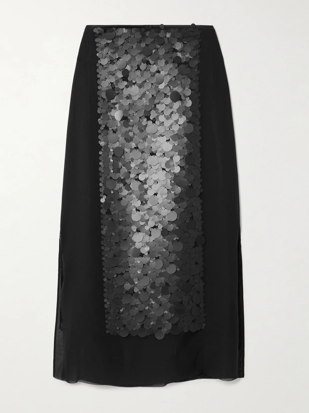 Cambo Pailette-embellished Crepe De Chine Midi Skirt
