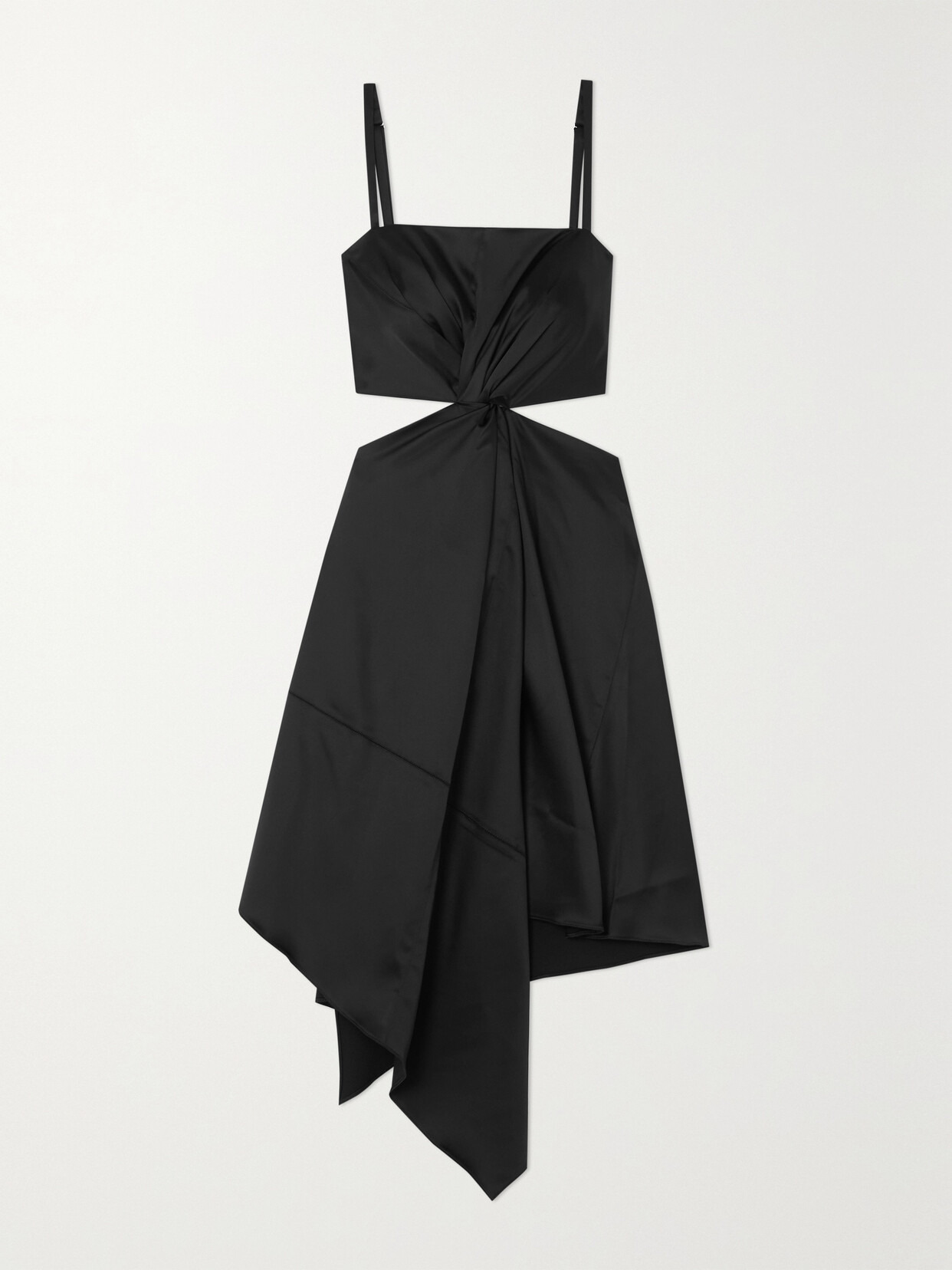 JW Anderson's dress is twisted at the prettily gathered bodice with cutouts to reveal the curves of your waist. Cut from glossy satin, it has delicate straps framing the square neckline and falls to a cascading handkerchief hem. Style yours with a blazer and sculptural heels.