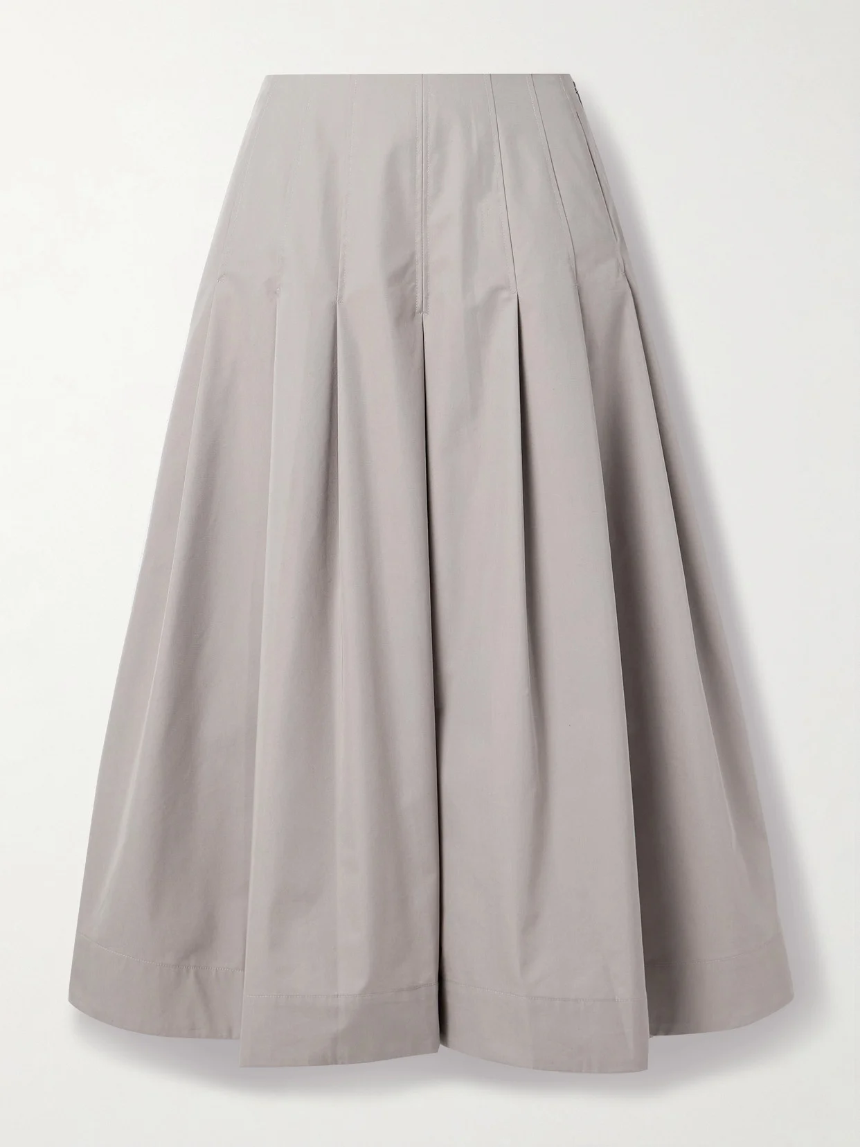 KALLMEYER re-imagines everyday staples "for modern, empowered women." This 'Dakota' skirt is made from cotton-blend twill and sharply pleated for movement through the midi hem. The soft 'Elephant' gray will complement so much.