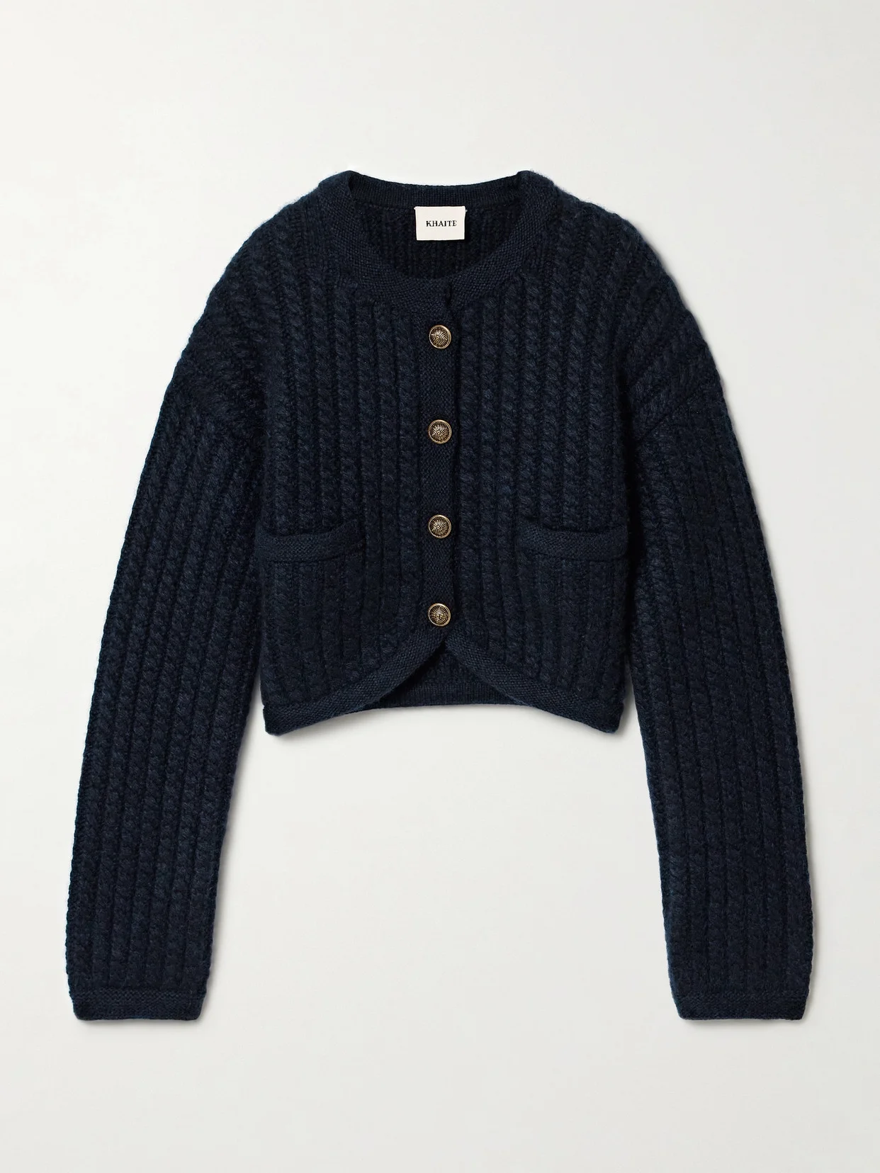 KHAITE's 'Balser' cardigan has an incredibly soft handle and intentionally detailed design that ensure plenty of wear throughout the seasons. It's cable-knitted from a cashmere and mohair-blend and has a curved hem and burnished gold-tone buttons.