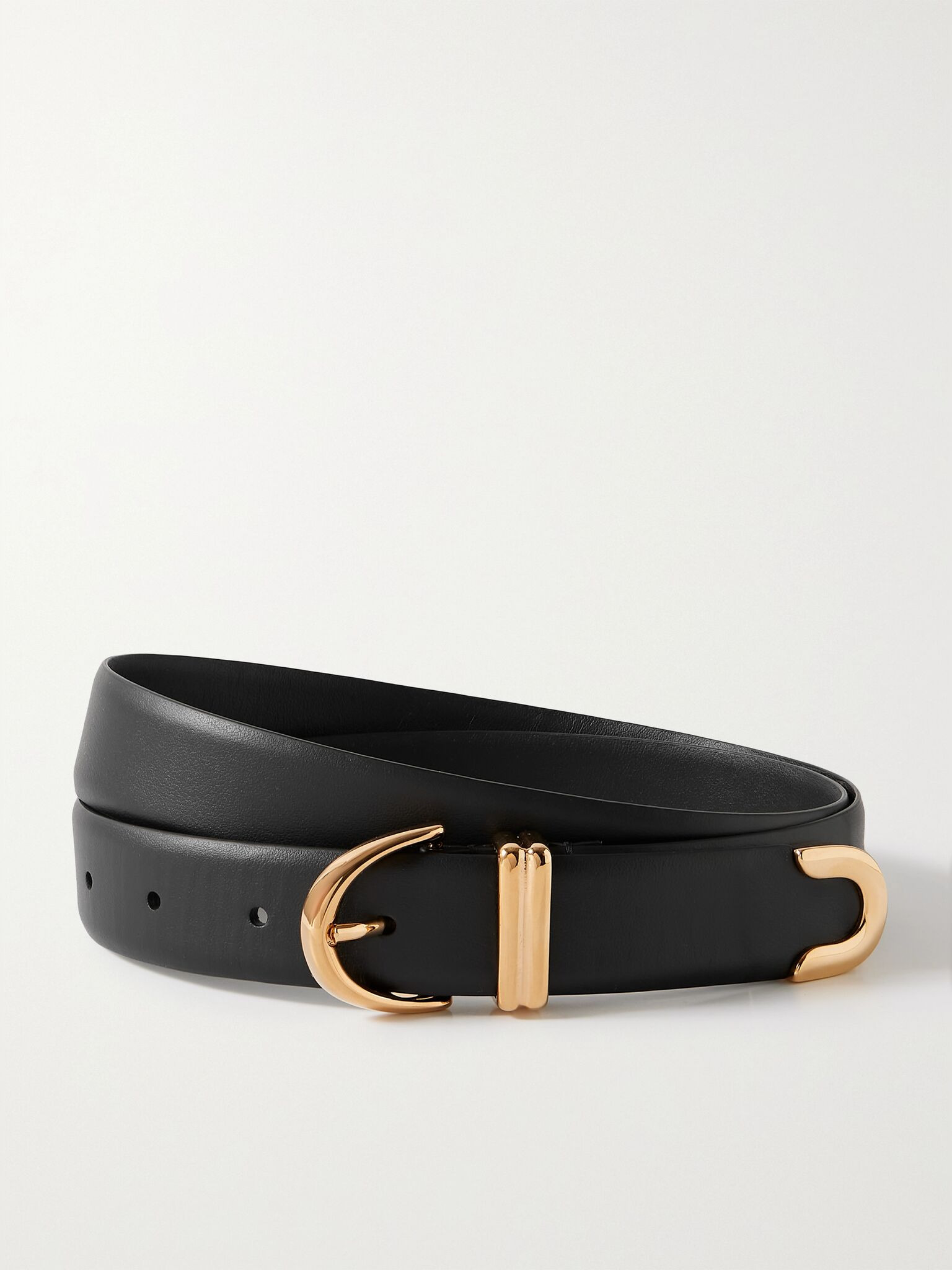 Khaite's elevated staples are meant to be worn and loved for years to come, and this versatile belt is no exception. Made in Italy from soft leather, it has a slim shape and fastens with a polished gold-tone buckle. Wear yours through the loops of your jeans or to cinch the waist of a blazer. Size & Fit - Designed to be worn on the hips or waist - Measurements can be found in the link below Details & Care - Black leather (Calf) - Buckle fastening