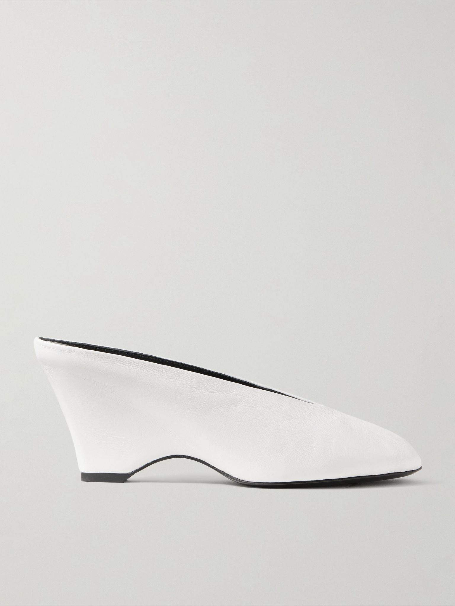 KHAITE's 'Cloak' mules are crafted from leather with peep-toes and angular heels that speak to the designer's architectural influences. The low-cut vamps create an elongating effect. Size & Fit - Fits true to size, take your normal size - Italian sizing Details & Care - Heel measures approximately 75mm/ 3 inches - White leather (Lamb) - Slip on