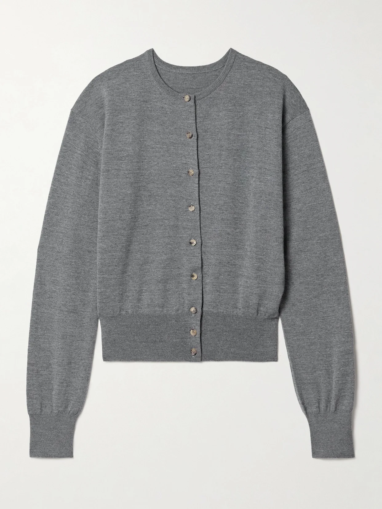 KHAITE's 'Jackie' cardigan is spun from wool-blend that's so lightweight and fine, it has a slightly sheer finish. It has a classic crew neck and ribbed trims that temper the slightly loose fit. The classic 'Sterling' goes especially well with neutrals and just about every wash of denim.