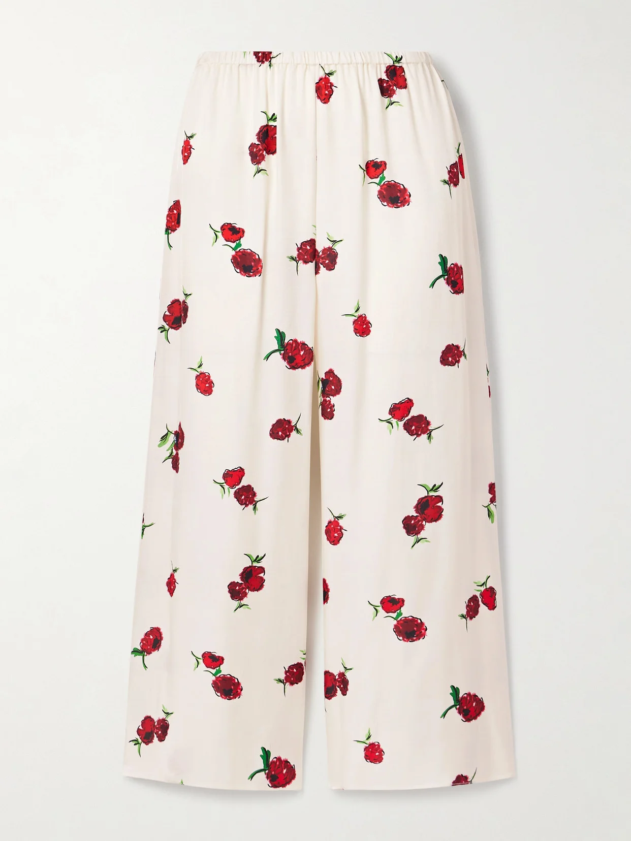 KHAITE's 'Mindy' pants are decorated with a vibrant raspberry print - a playful deviation from the brand's signature neutrals. Cut from fluid twill, they have an elasticated waistband and wide, breezy legs. Complete the set with the matching 'Argo' shirt in our edit.