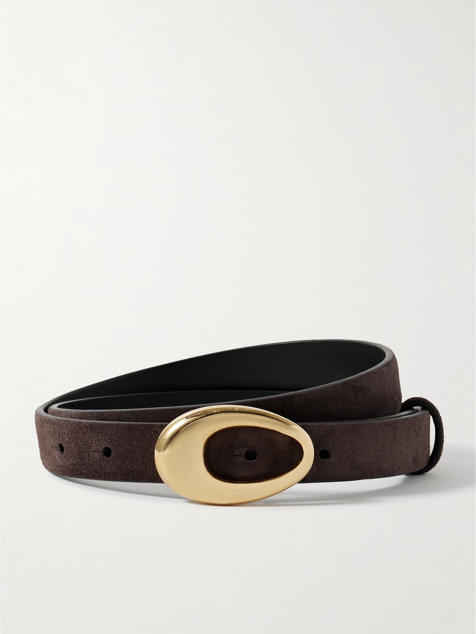 KHAITE's 'Olivia' belt will add a polished finishing touch to your outfits. It's made from suede and fastens with a sculptural gold-tone buckle. Size & Fit - Designed to be worn on the hips or waist - Measurements can be found in the link below Details & Care - Chocolate suede (Calf) - Buckle fastening