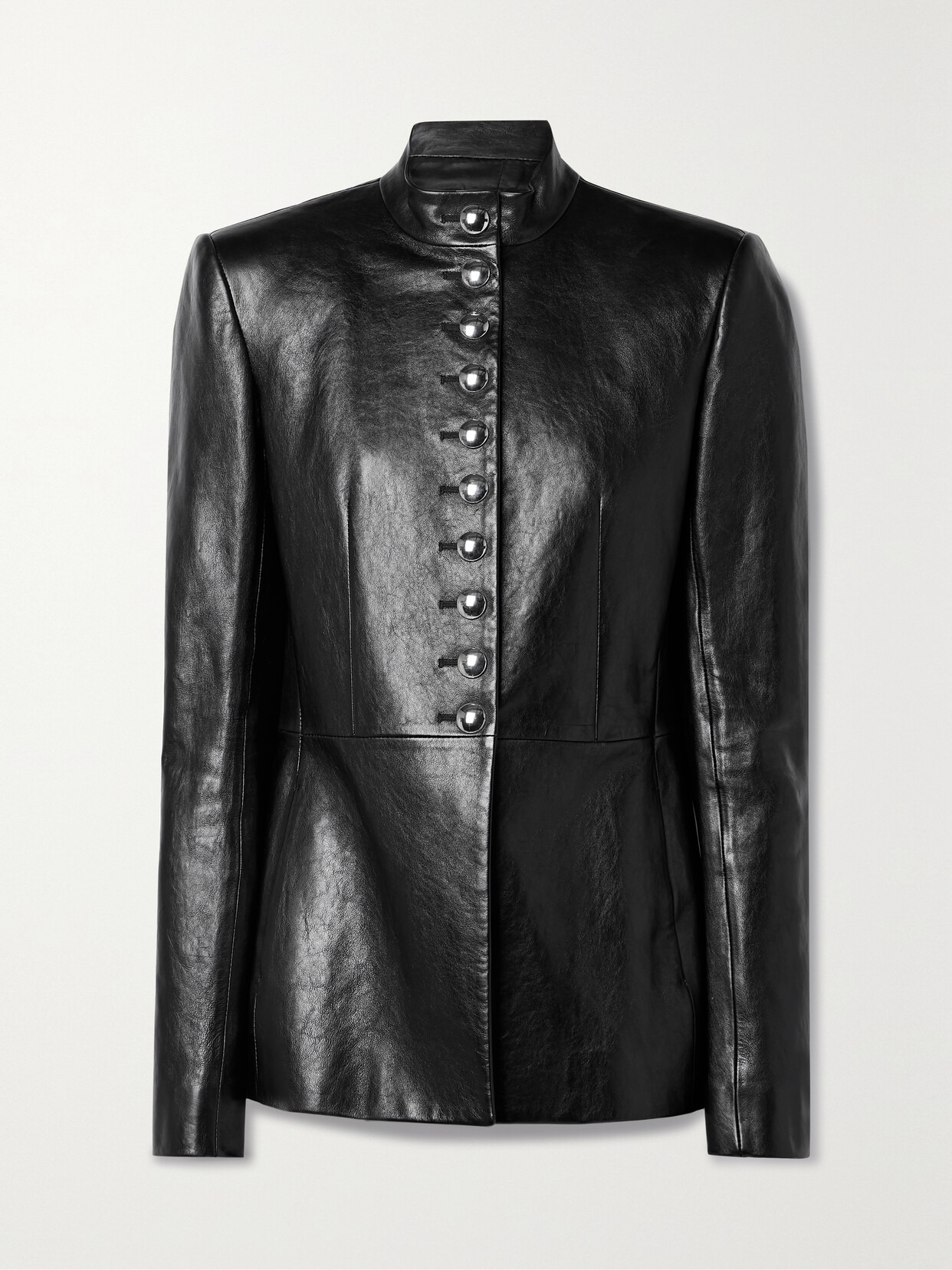 Khaite's 'Samuel' jacket effortlessly combines military styles with the refined details of sharp tailoring. Cut from supple black leather, it has a grandad collar and polished silver-tone buttons. The padded shoulders are contrasted by a nipped-in waist, while the satin lining ensures easy layering.