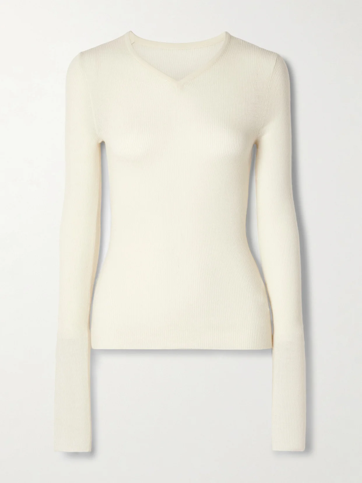 KHAITE's 'Tania' top is the perfect foundation for any outfit, from sharp tailoring to elegant skirts or casual jeans. It's made from a lightweight wool-blend that's ribbed to accentuate the close fit and has a V-neckline.