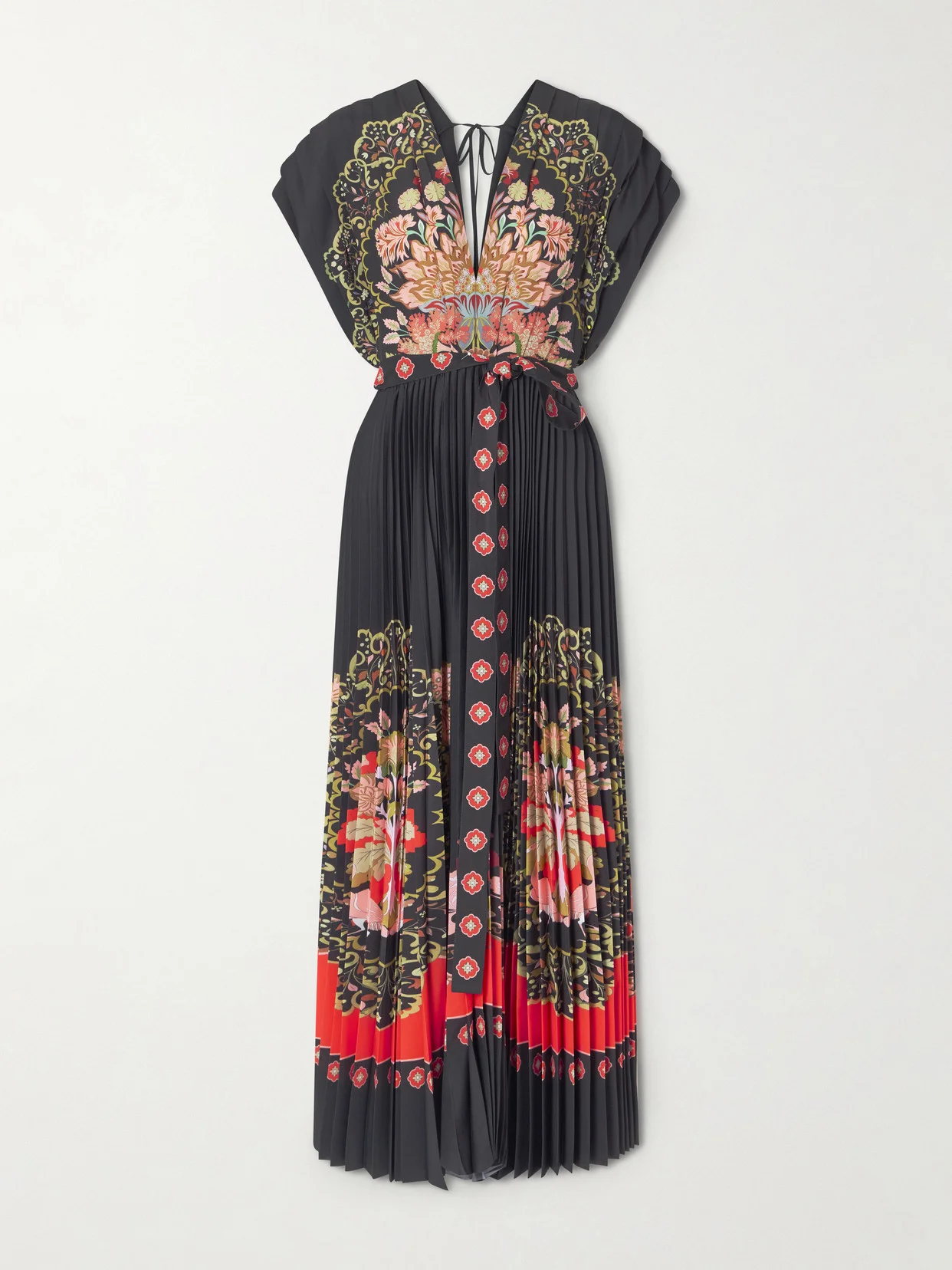 Belted Pleated Printed Crepe De Chine Maxi Dress
