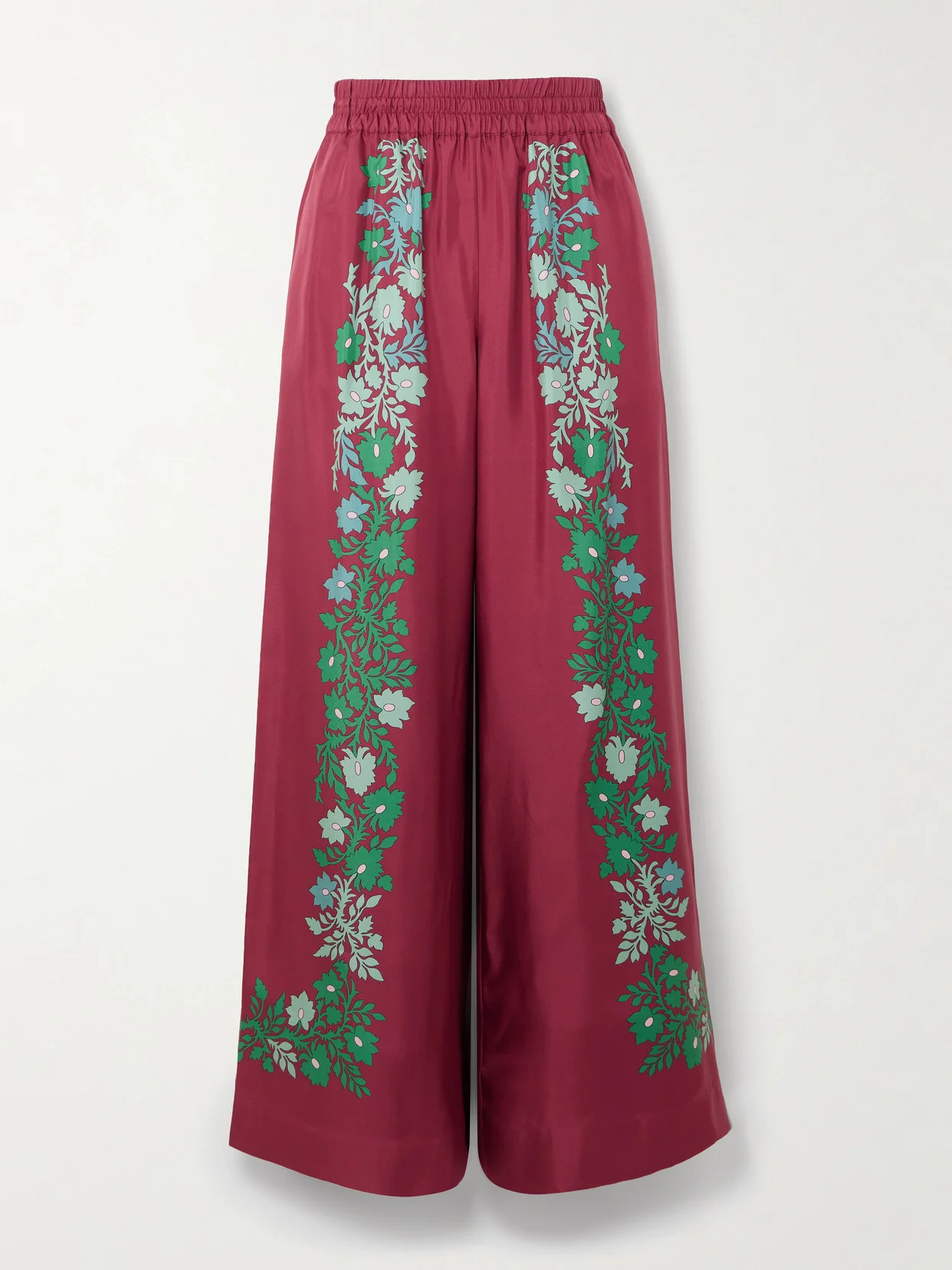 La Double J's 'Palazzo' pants are a brand signature. Crafted from fluid silk-twill, this pair is defined by a striking floral pattern and falls to elegant wide legs. An elasticated waistband adds a touch of comfort.