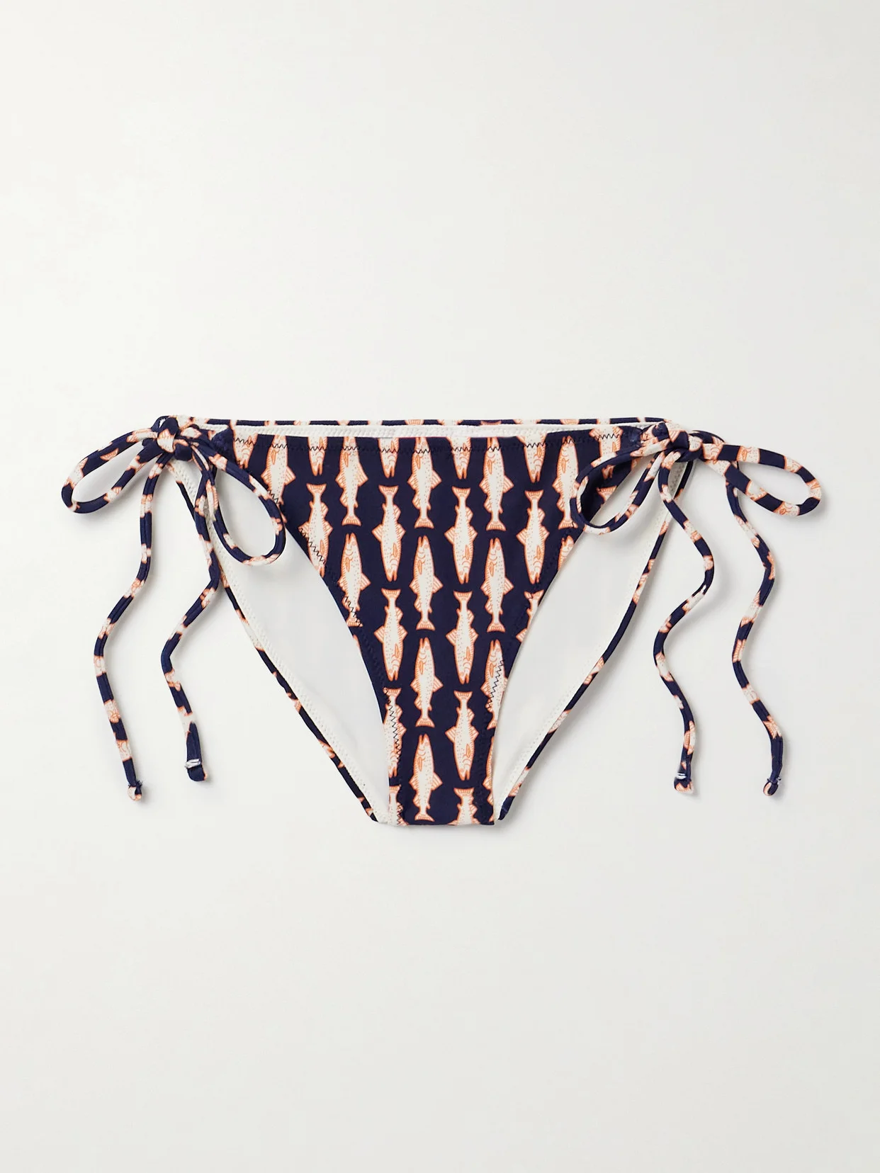 La DoubleJ's bikini briefs capture the brand's signature joy with a whimsical fish pattern inspired by vintage Italian designs. They're cut from stretch fabric and finished with adjustable side ties for a customized fit. Complete the set with the matching top.