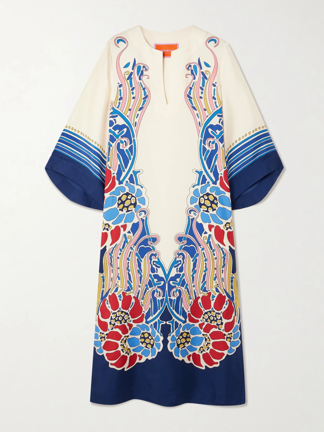 La DoubleJ's dress is cut in a breezy shape inspired by kaftans. It's made from silk-twill with a spirited floral print along the cuffs, hem and spilling artfully down the sides.