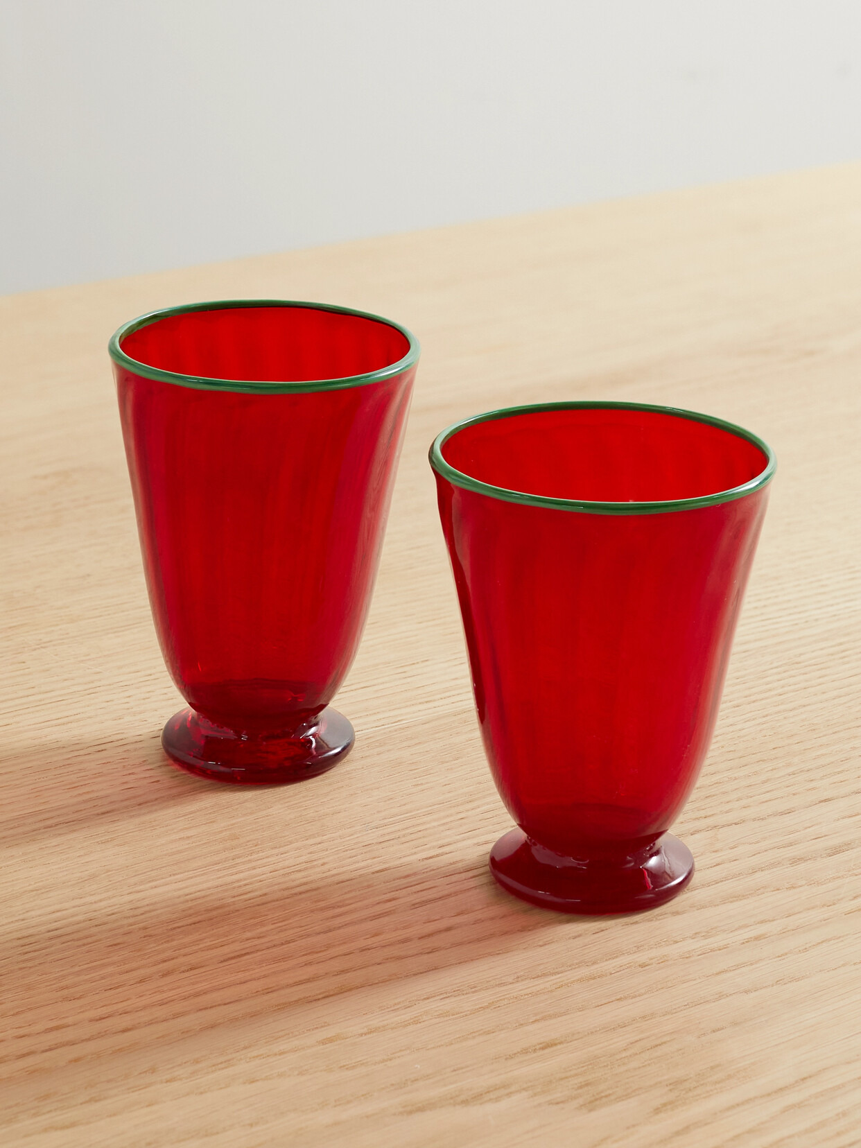 La DoubleJ's glasses are an instant pick-me-up. They've been handblown from Murano glass that's accented with dark-green brims. Mix and match them with other colors from the 'Rainbow' collection.