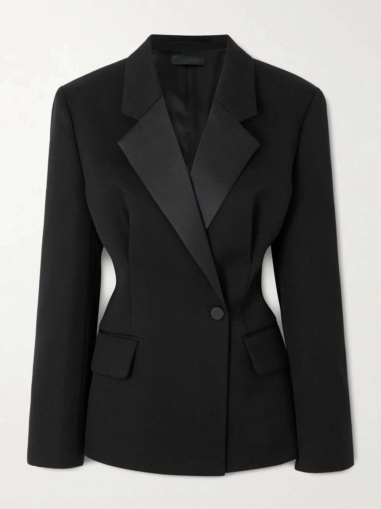 Lanvin's take on the classic tuxedo blazer is just as elegant as you'd expect. Tailored from wool, it has a double-breasted front with satin notched lapels and a nipped-in waist. The covered buttons lend a refined finish.