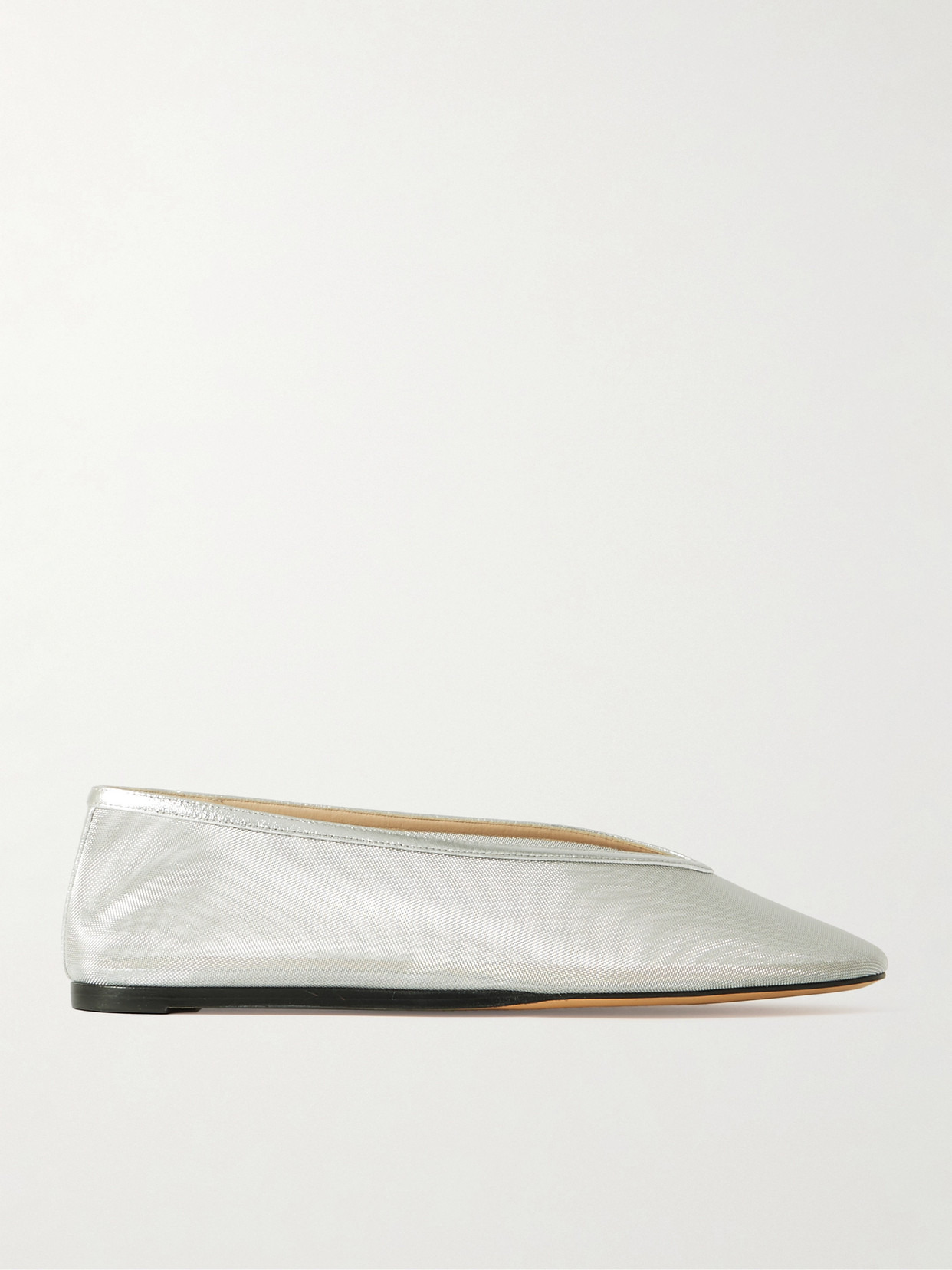 Luna Metallic Leather-trimmed Mesh Ballet Flats